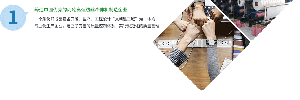 公司致力于制造質(zhì)量上乘的產(chǎn)品,優(yōu)質(zhì)的售后服務(wù)。產(chǎn)品為國內(nèi)眾多企業(yè)服務(wù),并遠(yuǎn)銷東南亞、東歐及南美。我們期待與海內(nèi)外客戶廣泛合作,共創(chuàng)化纖工程新輝煌。